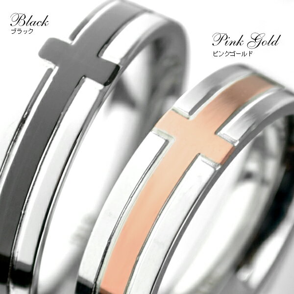【ペアリング】 サージカルステンレス316L 指輪 クロス アレルギーフリー シンプルな指輪で正面にクロスラインをアクセントに大人気のリングから ペアリングに最適な、ブラック&ピンクゴールドが登場! レディース、メンズ問わずに幅広くお使いいただけますのでお揃いでつけるのも◎。