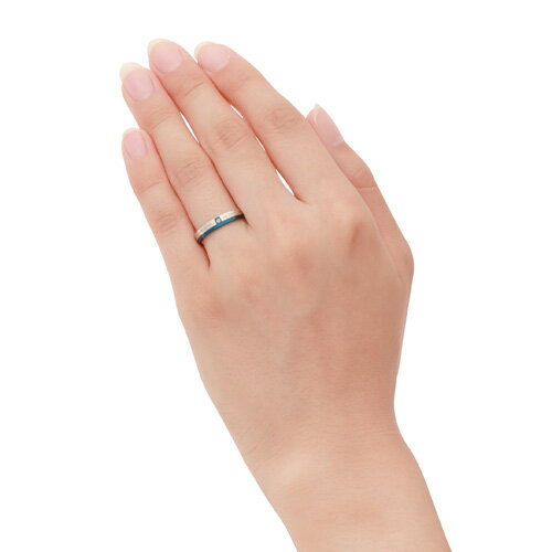 【送料無料】【toU by THE KISS】【ペアリング】ダイヤモンド ブルーイオンプレーティング ステンレス レディース メンズ リング(ユニセックス単品) リング下部のカラーラインが指元を華やかに彩るシンプルなデザイン。