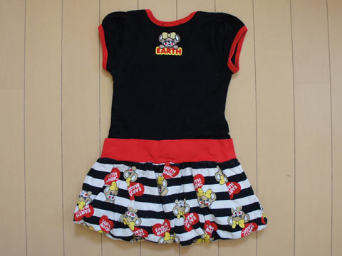 [m] アースマジック earth magic アウトレット 子供服 女の子 100cm 半袖 ワンピース 黒 赤 マフィーちゃん 春 夏 ★4 ガールズ 女児 キッズ 【中古】 ユーズド リサイクル 古着 子ども服 こども